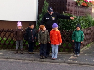 Bereits am 11.11.2013 trafen sich die zukünftigen Schulkinder mit den beiden Polizeibeamten, Herrn Singer und Herrn Deißler, von der Jugendverkehrsschule Offenbach. Dort konnten die Kinder sehr anschaulich und kindgerecht erfahren, was man im ...