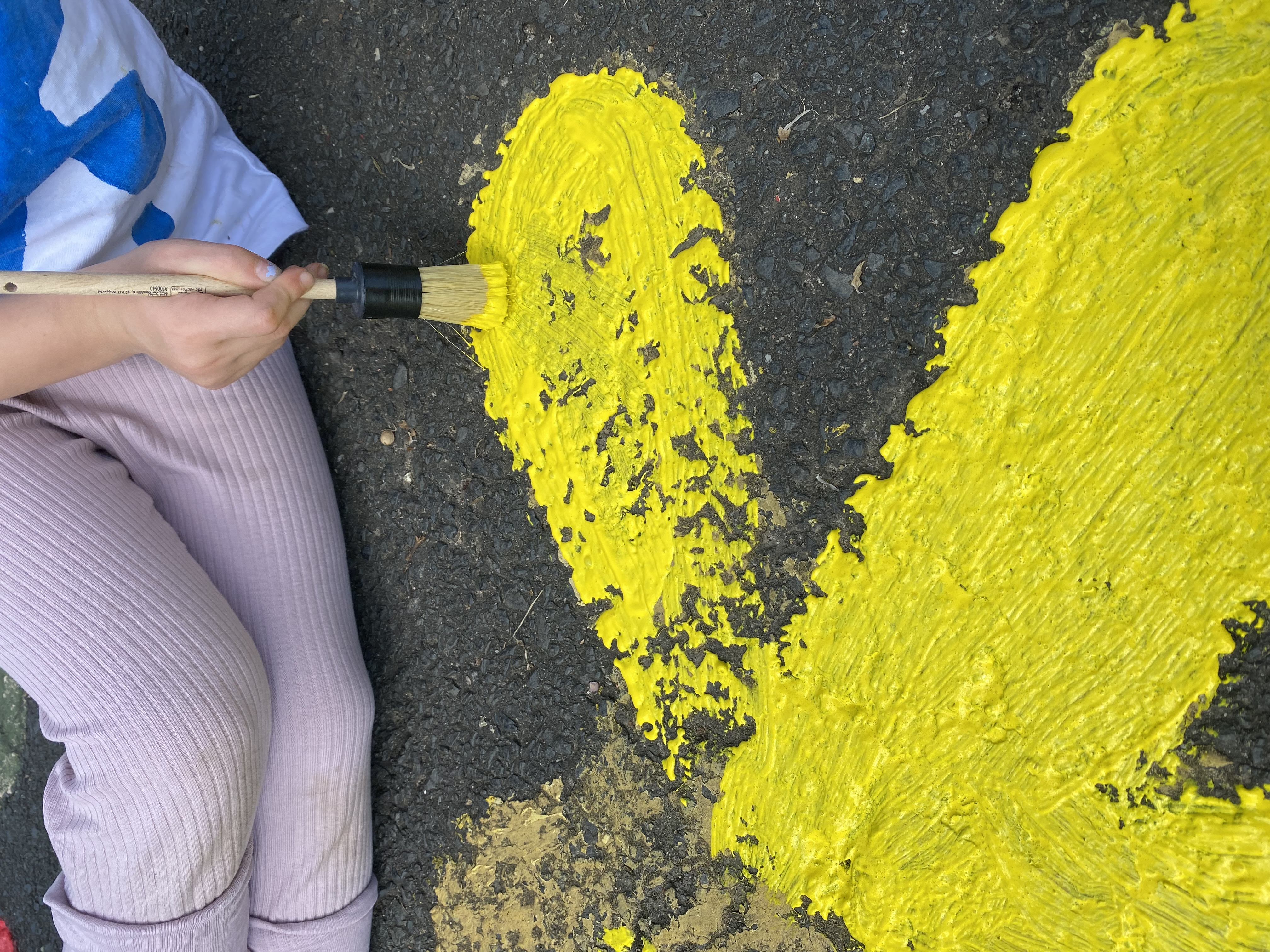 Bei den im Jahr 2021 erforderlichen Asphaltarbeiten vor der Kita „Haus der kleinen Kleckse“ musste die „Klecksehaus-Raupe“ vor dem Eingangstor in der Waldstraße leider weichen.